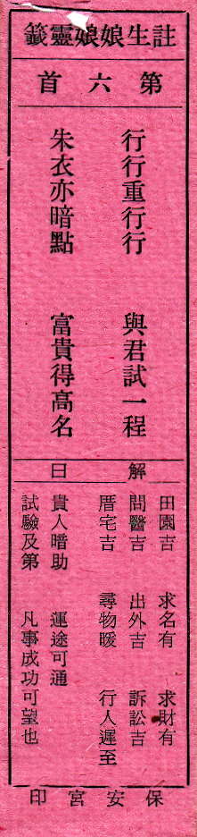 注生娘娘灵签 第六签